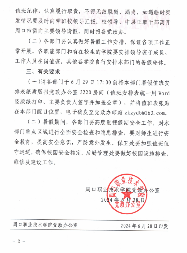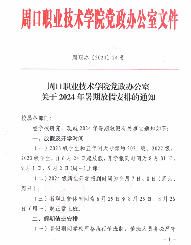 2024年暑期放假及值班安排