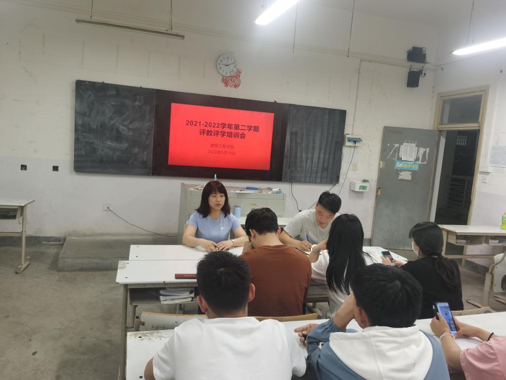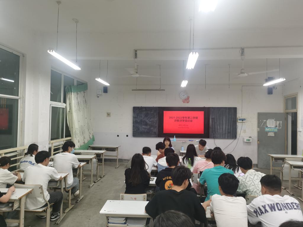 为了更好的获得教学评价信息,以改进教学水平,提高教学能力,建筑工程公司于5月16日晚对员工进行了评教培训会,指导员工线上评教的方法以及如何客观公正的对每一门课作出有效评价。培训由教学办主任宁丽平主持,副经理黄猛参加活动。