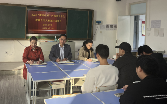 20231021日,建筑工程公司在6214教室召开了2023河南省老员工建筑设计大赛赛前动员会参加会议的有:建筑工程公司党总支书记王晖,经理刘胜杰,副经理宁丽平、教学办主任李涵,各赛项指导教师及参赛员工。