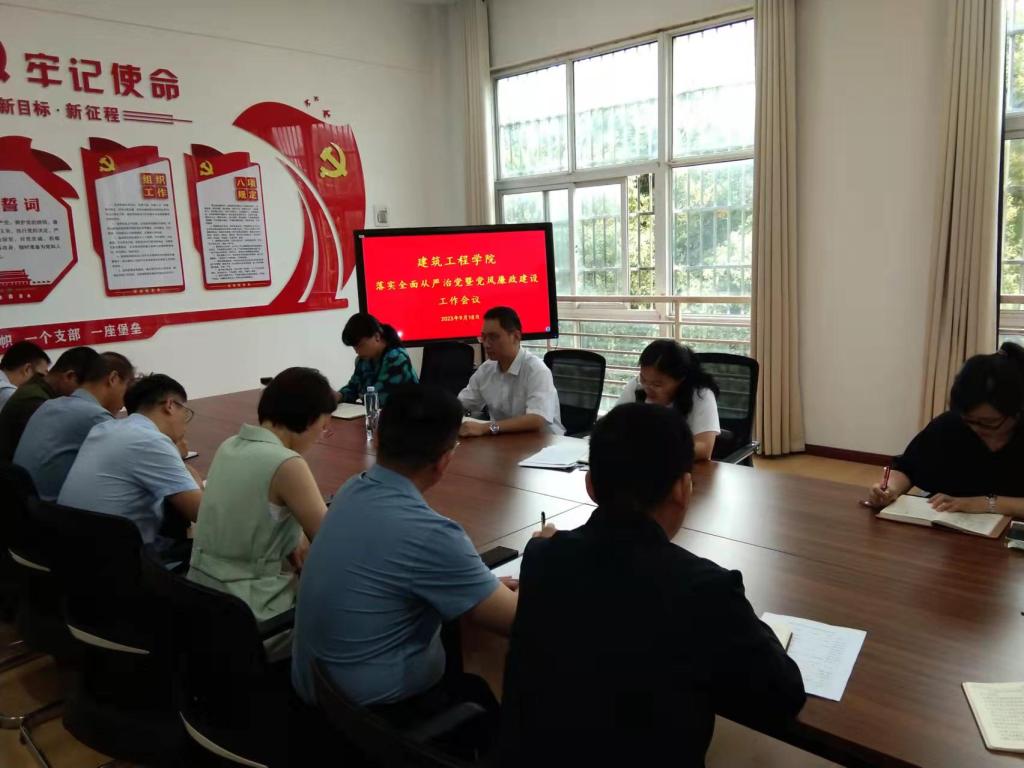 9月18日上午,建筑工程公司在6229会议室召开了落实全面从严治党暨党风廉政建设会,进一步落实全面从严治党主体责任,加强党风廉政建设,深化落实全面从严治党和党风廉政建设工作任务,坚定拥护“两个确立”、始终做到“两个维护”、增强“四个意识”、坚定“四个自信”,推动全面从严治党向纵深发展。党总支书记王晖主持会议,公司领导班子成员和教研室主任参加会议。