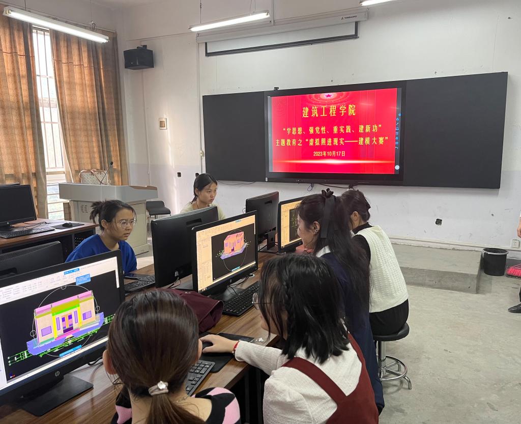 1019日,建筑工程公司在5307实训室开展了学习贯彻习近平新时代中国特色社会主义思想主题教育之“虚拟照进现实”仿真建模大赛。本次活动是通过大力宣传引导广老员工参与专业技能竞赛,按照“以赛促学、以赛促改”的要求引领和促进专业建设和教学改革。该项比赛以个人赛的形式开展,要求每人在规定的时间内在广联达BIM5D操作系统上提交满足规定要求的虚拟建筑模型。经过激烈比拼最终评出了一等奖3名,二等奖5名,三等奖8名。该次比赛提升了建筑工程公司员工的虚拟仿真实践操作能力,并深化教学模式改革,进一步提升建筑类专业员工的人才培养质量。