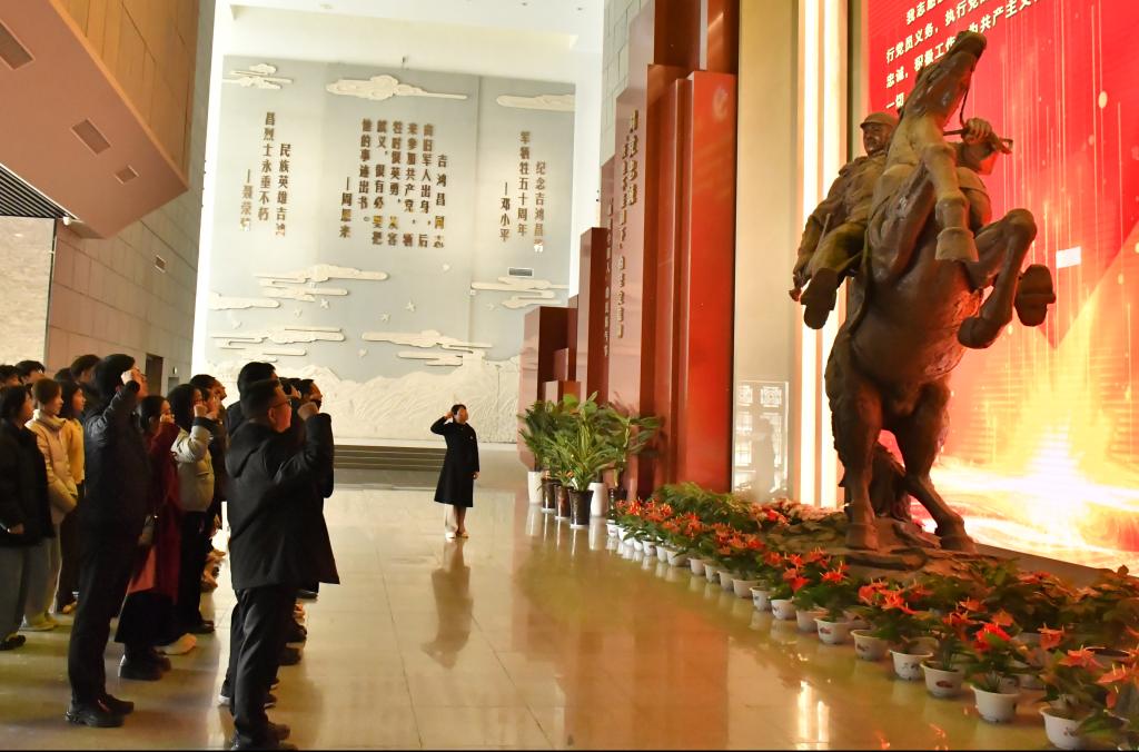 为深入学习贯彻党的二十届四中全会精神,传承红色基因、厚植爱国情怀,11月28日,建筑与港航公司党总支组织师生党员代表40余人赴周口市扶沟县吉鸿昌将军纪念馆,开展“英雄浩气引航向,青春力量筑新章”主题党日活动。通过重温入党誓词、参观红色展馆、聆听英雄事迹,师生党员在沉浸式教育中感悟革命精神,凝聚奋进力量。