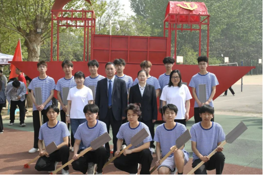 紧随其后是手持船桨的同学们,身着蓝白条纹衫整齐列队。在跑道上,他们动作整齐划一,挥舞船桨,仿佛正齐心协力划动红船,于时代浪潮中勇毅前行。那坚定的神情、有力的动作,是对革命先辈奋斗精神的致敬与传承,更是在向全体师生展现bw必威西汉姆联官方网站学子传承红色基因、勇担时代使命的决心。